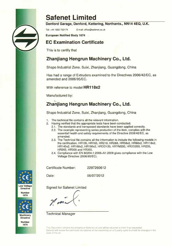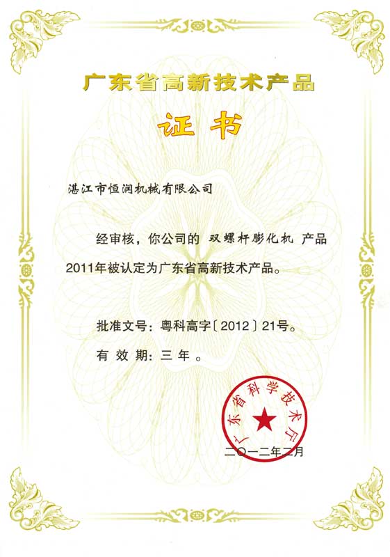 雙螺桿膨化機(jī)產(chǎn)品證書